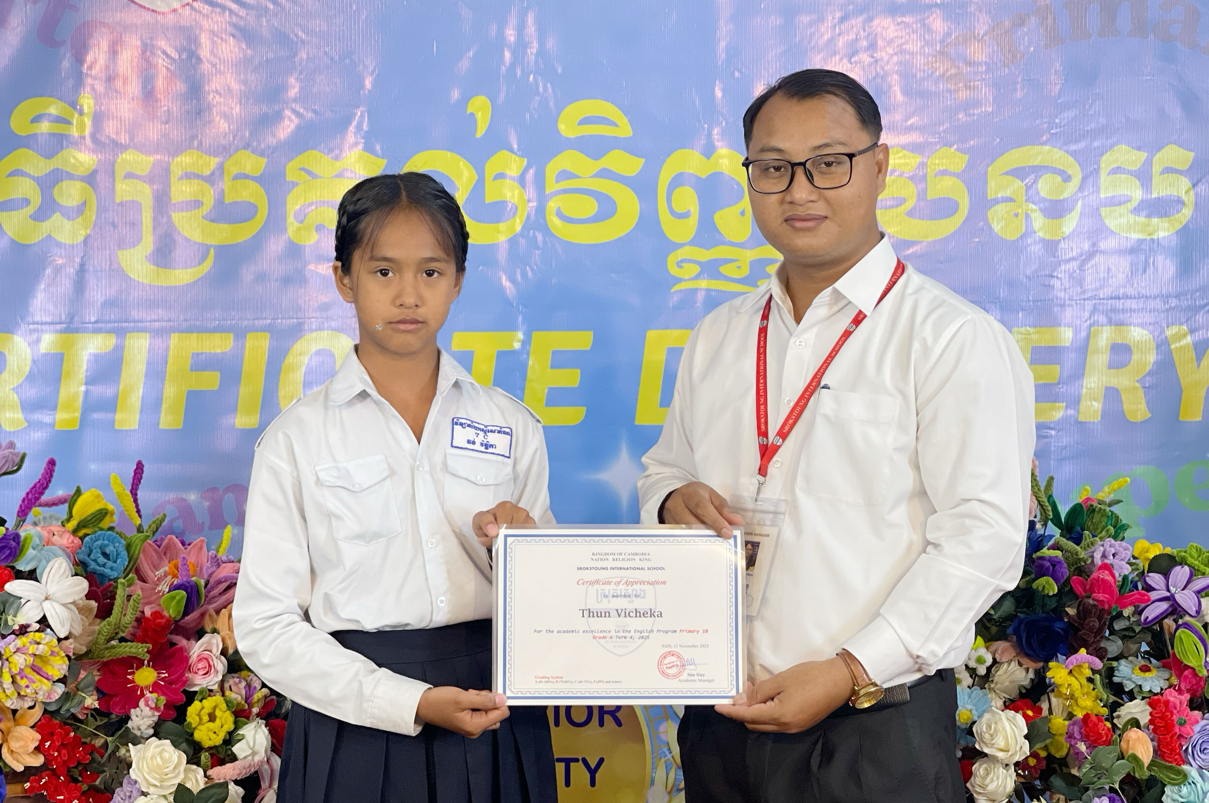 On the 28th of November, Srokstoung International School proudly held a Certificate Delivery Ceremony for our Part-Time Grade A students. This meaningful event celebrated the students’ hard work, dedication, and commitment to learning. Each certificate symbolized their effort, progress, and determination throughout the academic journey. We are very proud of all the students who achieved this milestone and showed responsibility and enthusiasm in their studies. Their success is also a reflection of the strong support from teachers, parents, and the school community. Congratulations to all Part-Time Grade A students on this achievement. May it motivate you to continue learning, growing, and striving for excellence in the future.